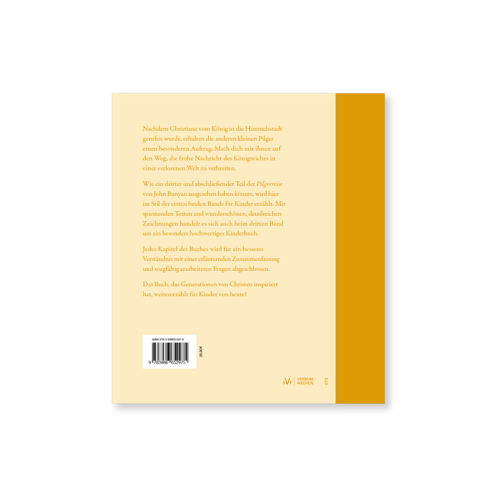Wie ein dritter und abschliessender Teil der Pilgerreise von John Bunyan ausgesehen haben könnte, wird hier im Stil der ersten beiden Bände für Kinder erzählt. Mit spannenden Texten und wunderschönen, detailreichen Zeichnungen handelt es sich auch beim dritten Band um ein besonders hochwertiges Kinderbuch.