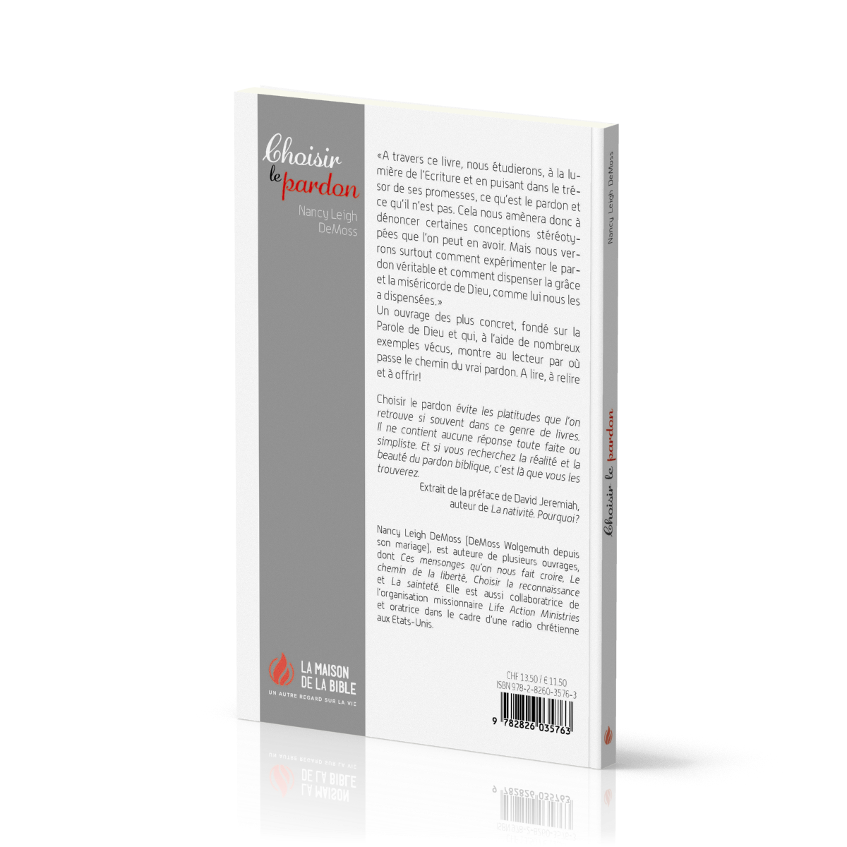 Dans ce livre traitant d’un thème ô combien important, Nancy Leigh DeMoss montre, en illustrant ses propos de nombreux exemples vécus, comment des pensées de haine, de vengeance et de rancune envers ceux qui nous ont fait souffrir peuvent se transformer en pardon définitif. Le secret d’une telle attitude ? Une foi et une confiance en Dieu fortifiées par les épreuves. « Pardonner aux autres comme Dieu nous a pardonné », voilà qui permet d’aller de l’avant et de progresser dans la foi.