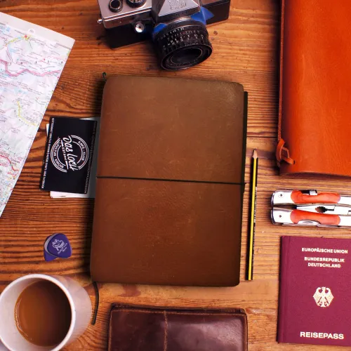 - A5 Lederumschlag aus extrem robustem Gürtelleder