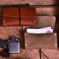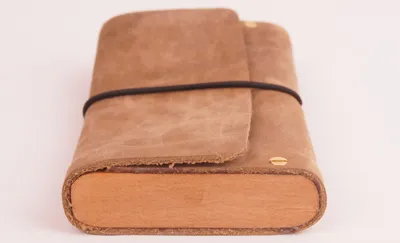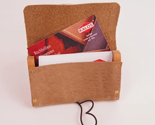 - Leder, Holz, 8 Schrauben, Gummiverschluss. Fertig