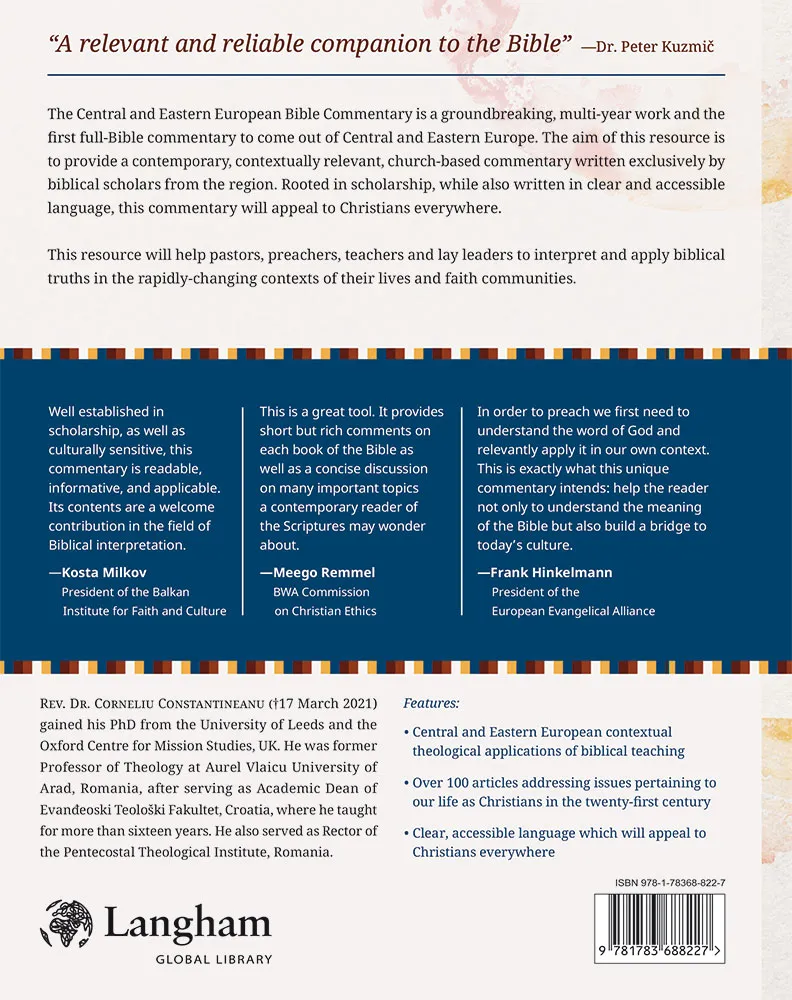 The Central and Eastern European Bible Commentary is a groundbreaking, multi-year work and the first full-Bible commentary to come out of Central and Eastern Europe. The aim of this resource is to provide a contemporary, contextually relevant, church-based commentary written exclusively by biblical scholars from the region. Rooted in scholarship, while also written in clear and accessible language, this commentary will appeal to Christians everywhere.