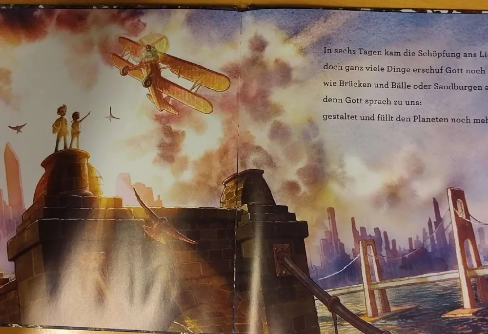 In sechs Tagen kam die Schöpfung ans Licht, doch ganz viele Dinge erschuf Gott noch nicht – wie Brücken und Bälle oder Sandburgen am Meer, denn Gott sprach zu uns : gestaltet und füllt den Planeten noch mehr.